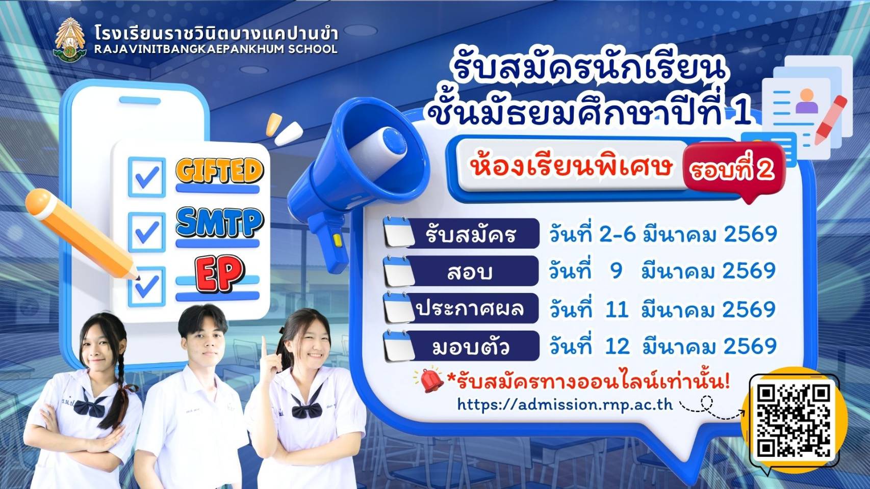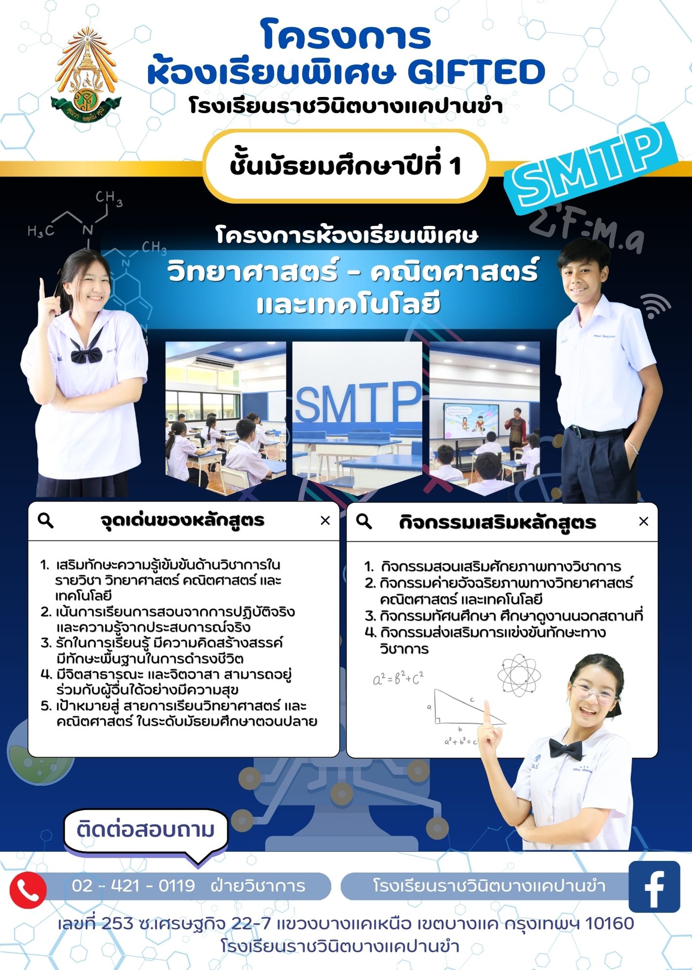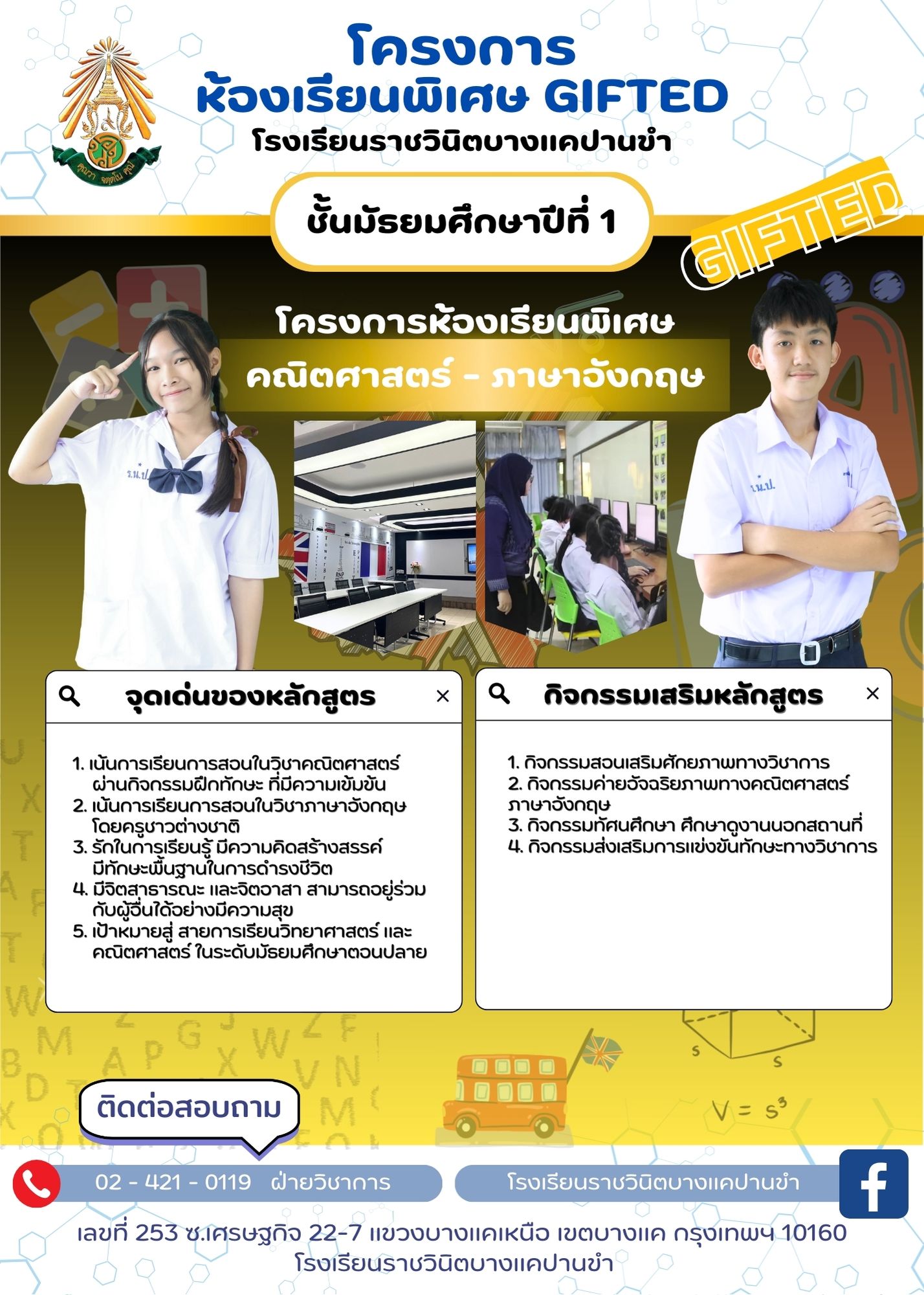 - สมัครเรียนออนไลน์ มัธยมศึกษาปีที่ 1 ห้องเรียนพิเศษ