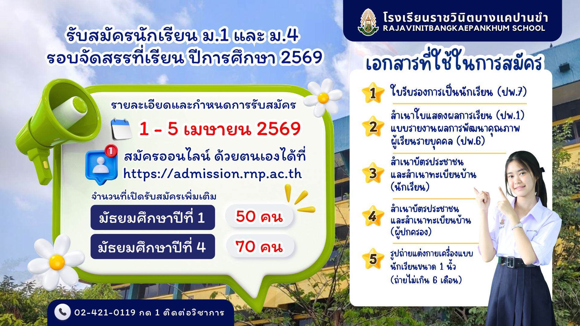 - สมัครเรียนออนไลน์ มัธยมศึกษาปีที่ 1 ห้องเรียนปกติ